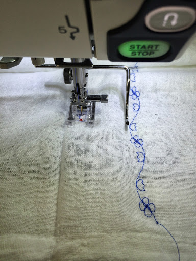 Note: using your quilting guide bar can be helpful when you begin stitching the center lines of your creation.