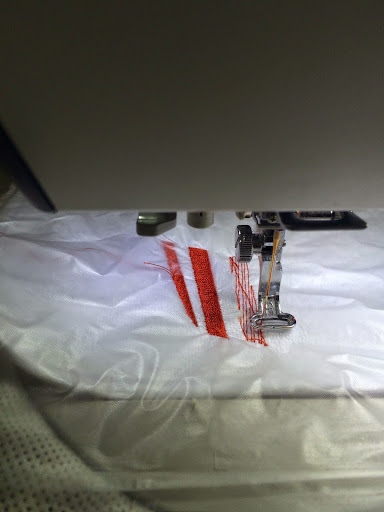 Center bib in hoop and press lightly so that the bib will adhere to the tear away