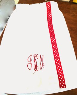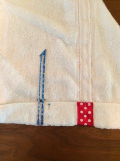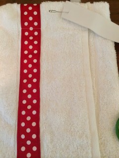 Fold down 2 ¼” to wrong side of towel, pin and stitch