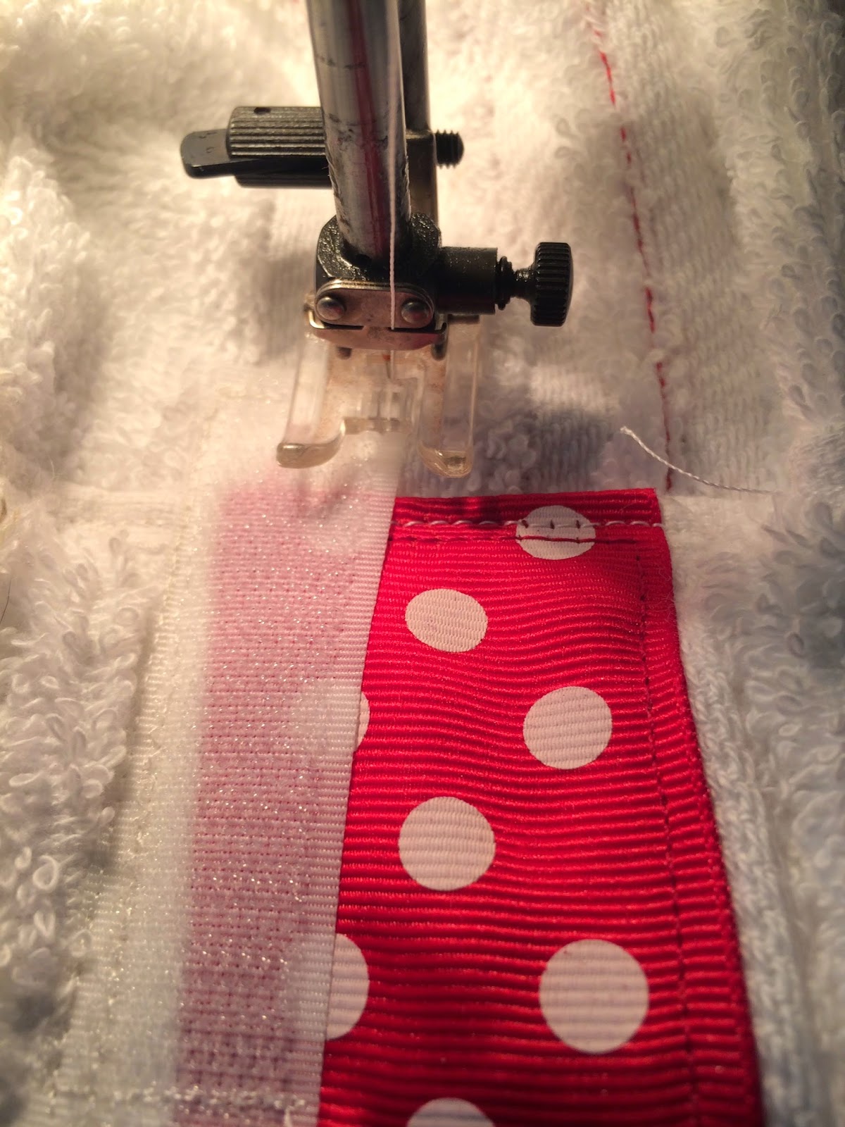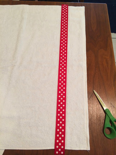 Fold down 2 ¼” to wrong side of towel, pin and stitch