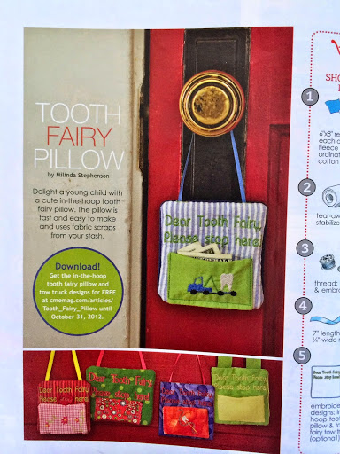 Delight a young child with cute, cuddly tooth fairy pillow. Get creative with this simple in-the-hoop delight. A great bazaar item–it is easy, fast and free using leftover scraps from other sewing projects.