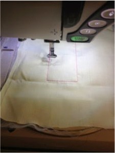 · Change to white embroidery thread and embroider color 2 to tack down bookmark backing.