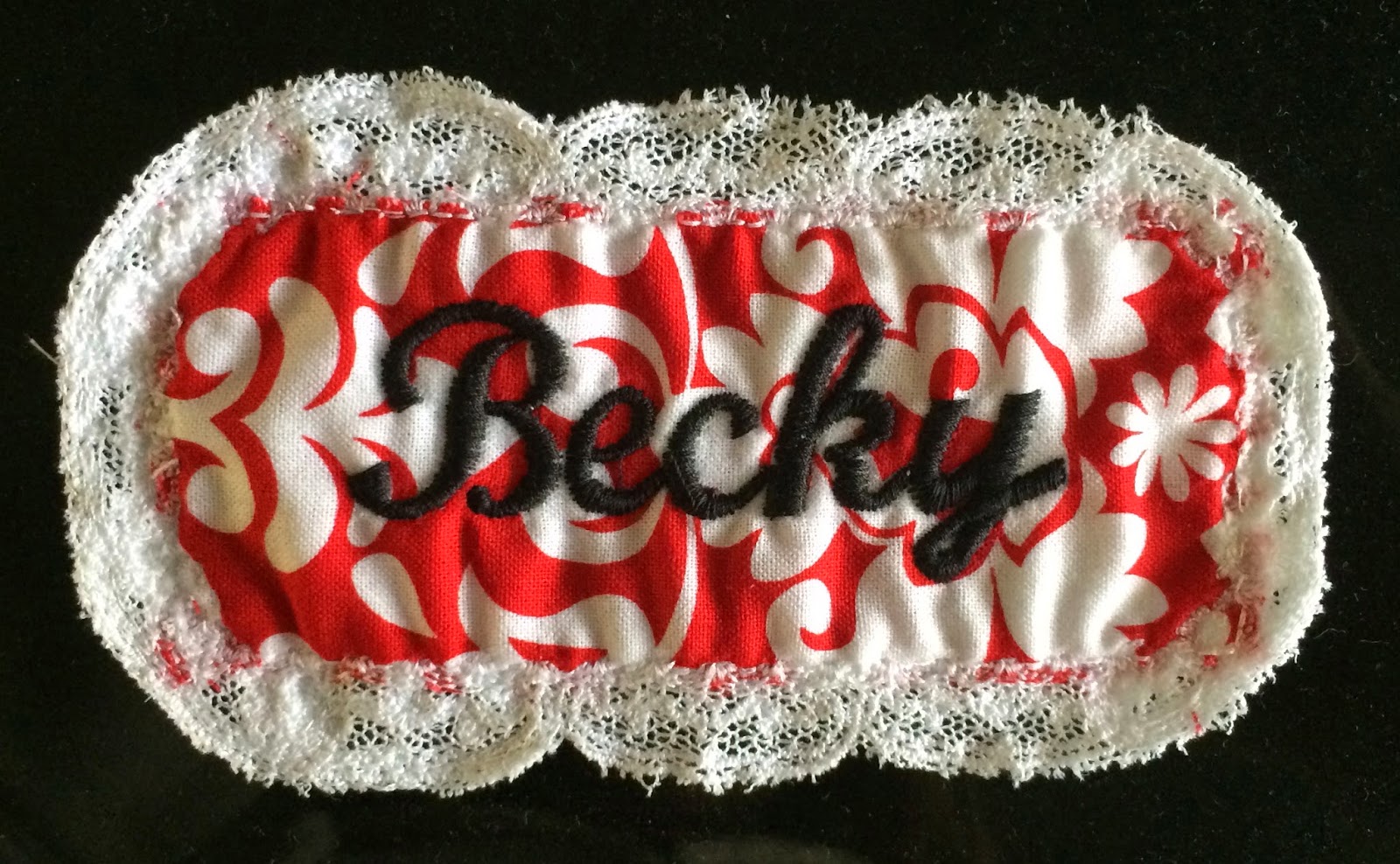 · Remove hoop from machine and trim away netting and wash away interfacing being certain not to cut into the lace. It’s ok to leave a small border around the actual lace. The interfacing will wash away, and the netting will not be visible. Leaving a bit around the edges helps to stabilize the lace.