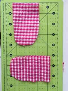 Straight stitch around the oval puppy ears leaving a small opening for turning.
