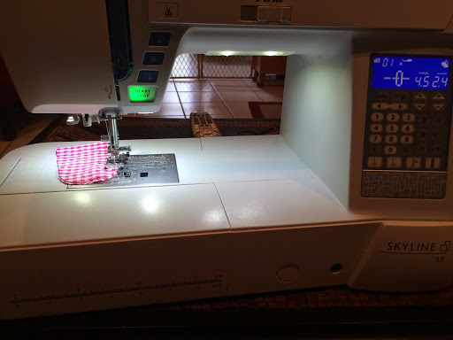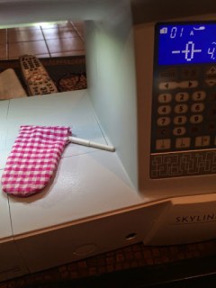 Turn right side out, and tack down ears by using stitch 93 on your Skyline S5