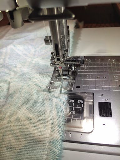 Fold 12″ by 18″ fabric strip in half, straight stitch down long side.