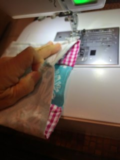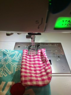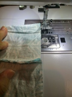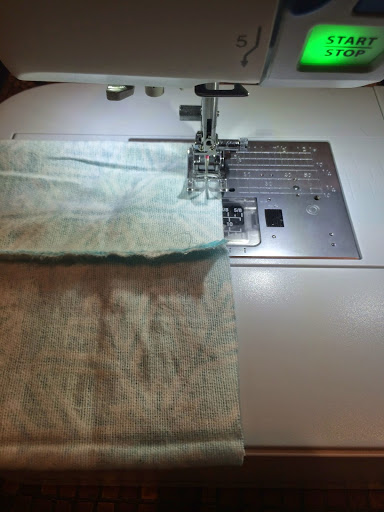 Straight stitch across the bottom of long strip leaving an opening large enough to pour in your rice or beans.
