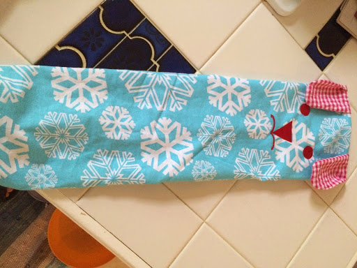 Refold fabric so that seam now goes down the back and puppy face is open.Straight stitch across, then zig-zag.