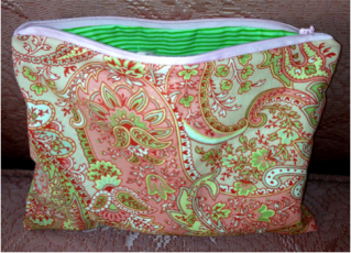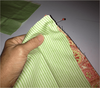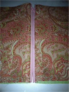 Pin layers together being certain the outer fabric, lining and zipper all line up at the top edge: