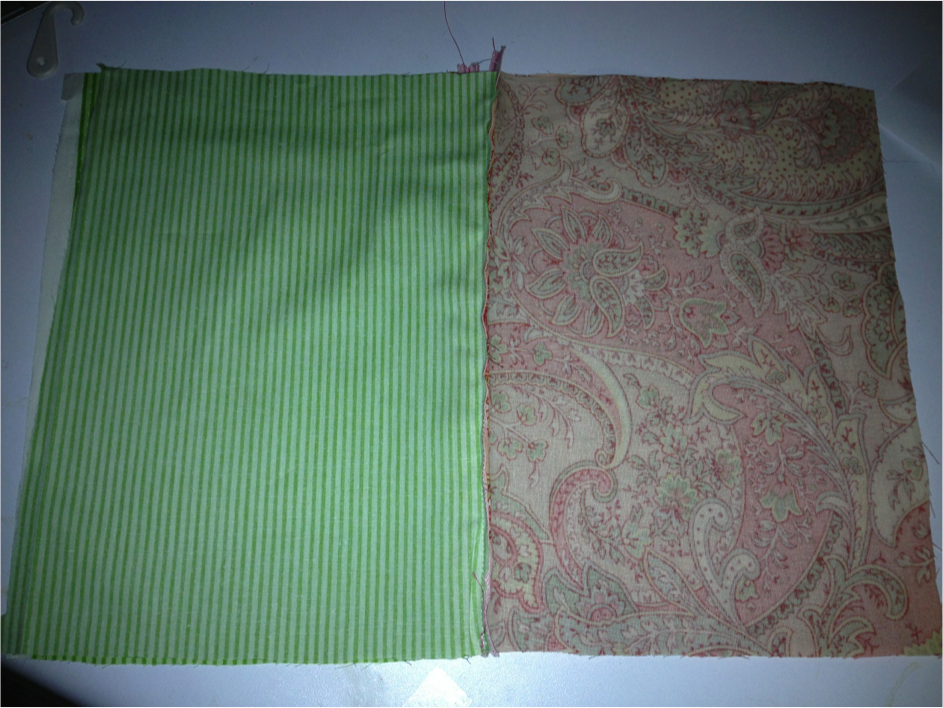 Place outside fabric right sides together, and bag lining fabric right sides together.