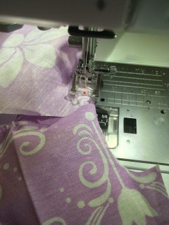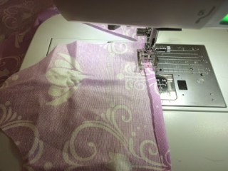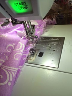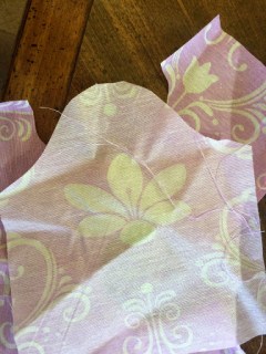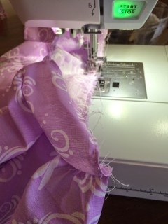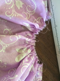 Sew across top edge of skirt piece. Be certain to leave a long thread tail at the beginning and end of your gathering.