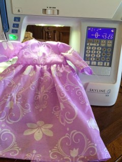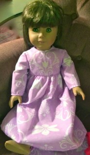 This quick and easy doll dress for the 18″ American Girl doll is modified from a free pattern from (click link for free pattern)