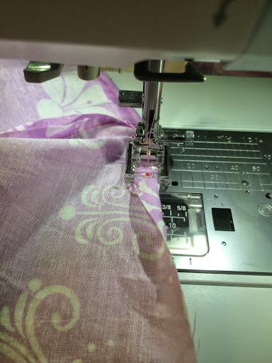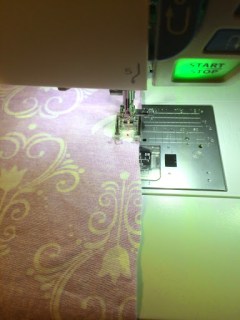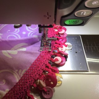 Fold down 1/4″ from top and bottom of skirt and narrow hem.
