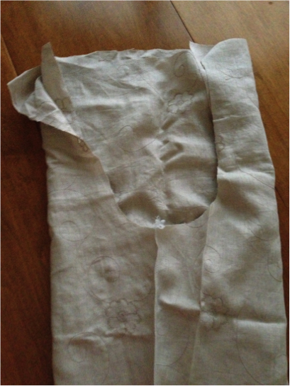 Once the leg is inside, slide around until the pieces perfectly match so that the crotch seam is exposed