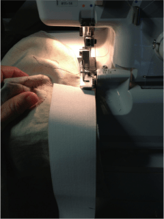 Divide elastic into quarter sections and mark each quarter section with a pen. Do the same with the waist of the pants.