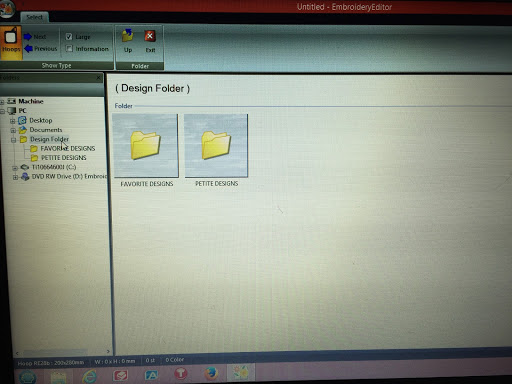 Next, you click the Design tab then design folder. All of the folders from your computer will pop up here. You can choose designs from your computer, or, you can choose from the built in designs on your machine.