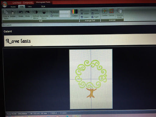 The embroidery editor works very similarly to the machine’s onscreen editor.
