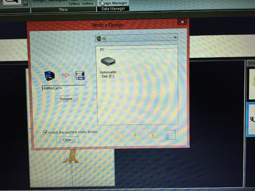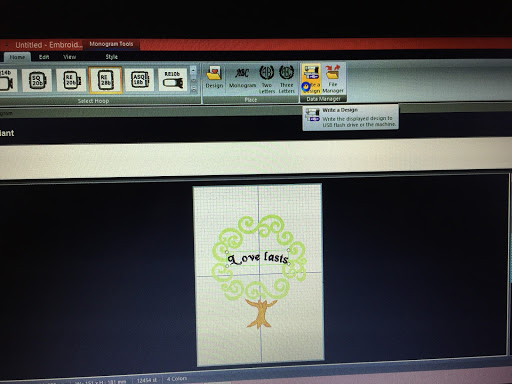 To save and send to machine, Click the Home tab at the top of your screen, choose Write a Design.