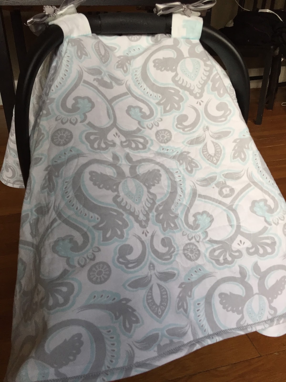 My first grand baby was born in January in the bitter cold of a northern Ohio winter. I wanted to create a car seat cover that would be guaranteed to keep him warm. |