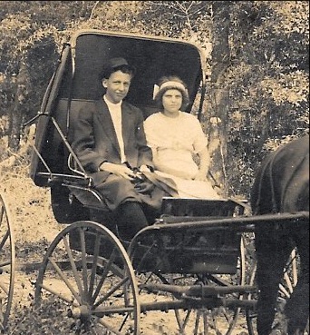 Here are my grandparents in their horse and buggy on their way to their new home.