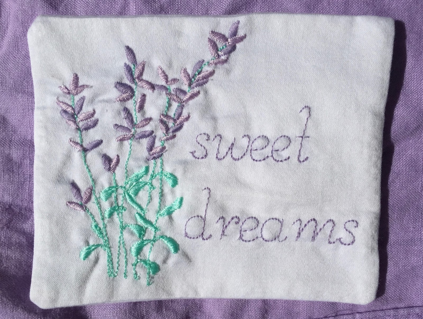 Lavender has a history of being conducive to sleep. According to the University of Maryland Medical Center, “research has confirmed that lavender produces slight calming, soothing and sedative effects when its scent is inhaled.” Housewives in the early 1900s also used rosemary or other sweet smelling herbs to place in a little bag inside of their hand embroidered sachets.
