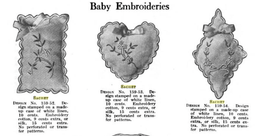 I’ll be posting more versions of sachets in the next few days. I’m working on digitized versions of the original Needlework Magazine Volume 17, 1915 versions.