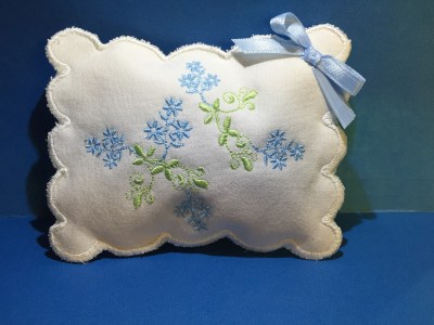 I wish I had the patience for such beautiful handwork. I do my best to emulate the look of hand embroidery by copying designs from old linens and magazines. For this project, I used Janome’s Digitizer MBX and embroidered on my Janome 15000. It’s a quick and easy project. I hope you enjoy!