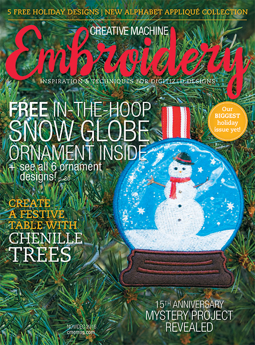 I created this peace garland for the November/December Creative Machine Embroidery magazine, but I also digitized an entire appliqué alphabet, so your garland isn’t limited to Peace. You can create a garland saying Merry Christmas, Happy Birthday, or whatever you wish. Create this in-the-hoop using burlap and a backing of your choice using the instructions in the magazine, available on newsstands today.